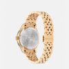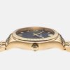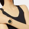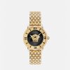 Un estilo atemporal reinventado de la línea hellenyium original, este reloj hellenyium para mujer está enriquecido con una elegante esfera negra y números romanos y una medusa en tono dorado en la posición de las 12 en punto. La caja color champán está rodeada por el patrón de greca en la esfera interior y el anillo superior para darle una apariencia icónica. rematado con una pulsera color champán.