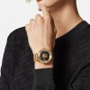 Este reloj, elegante e impactante, presenta una medusa tridimensional engastada entre dos cristales e índices de números romanos adornados con 60 diamantes de 0,33 quilates. El reloj La Medusa se completa con una correa de metal.