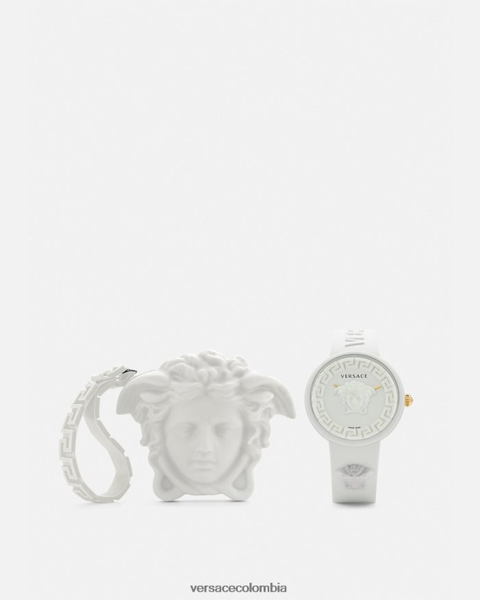 - pulsera: correa de silicona blanca con medusa en 3D; Letras de Versace en 3D; hebilla de lengüeta