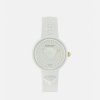 un reloj moderno en ricos colores pop detallados con símbolos tonales de Versace que incluyen una medusa tridimensional, un anillo interior de greca y letras de Versace en la banda de silicona. El accesorio se entrega en una bolsita de silicona a juego. Todos los relojes Versace están garantizados por la marca “fabricación suiza”.
