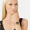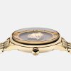 - esfera: anillo interior ip champagne y esfera negra con logotipo de versace