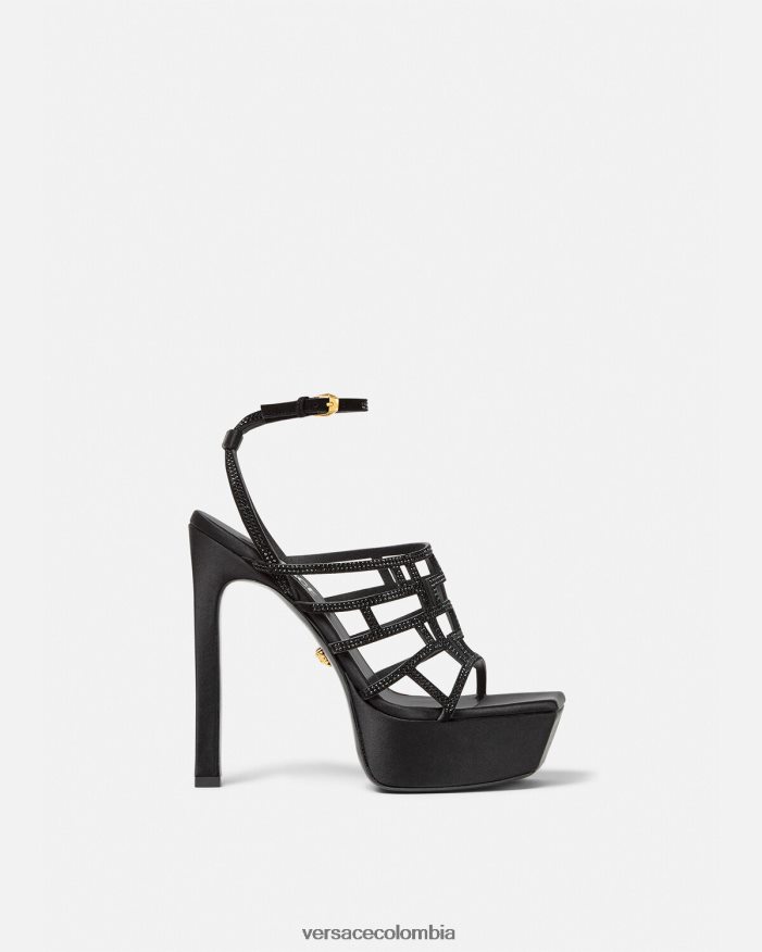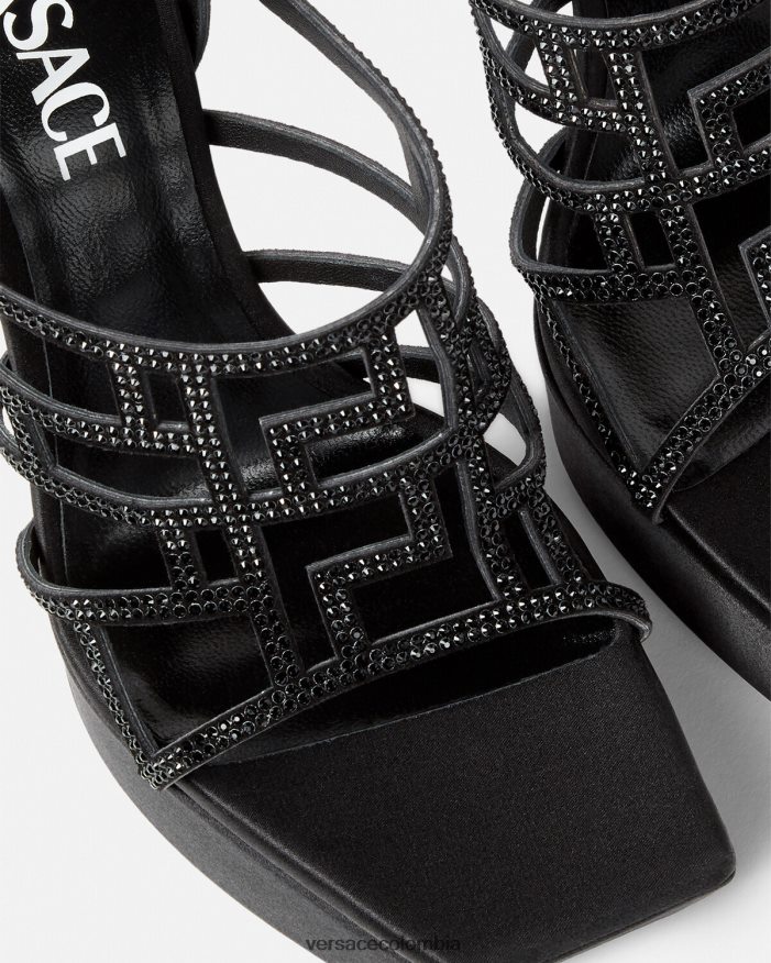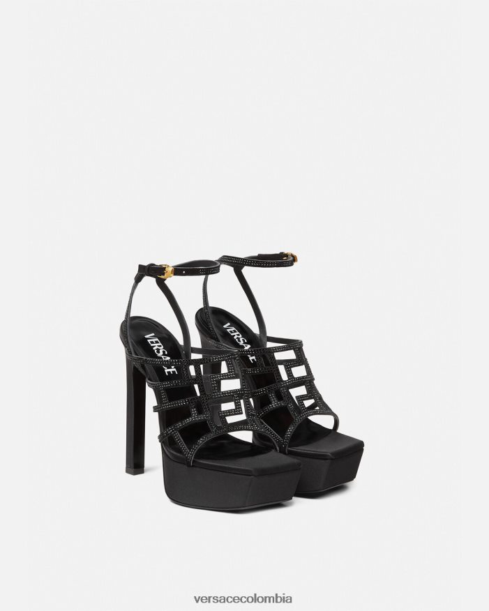 mujer sandalias con greca maze y cristales Versace negro 2RP40F467 zapato