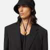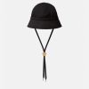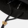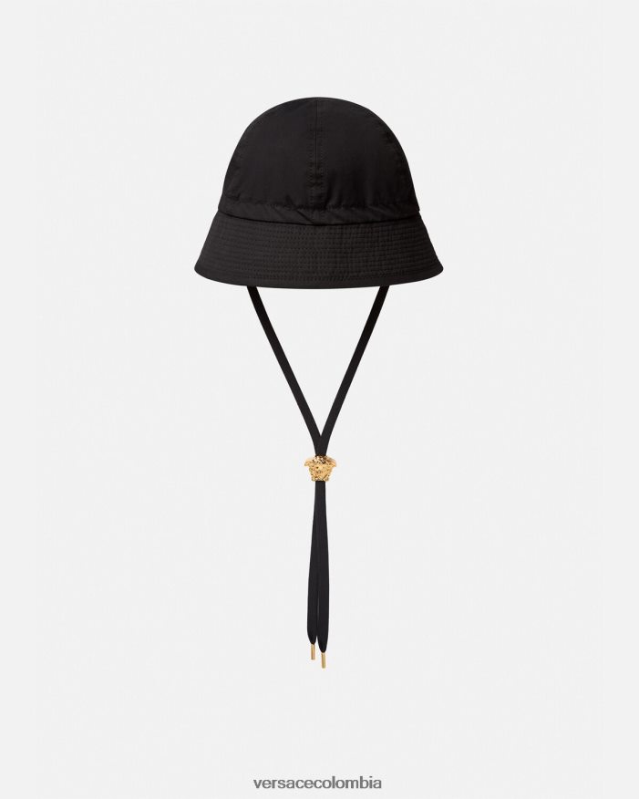 un sombrero de pescador de lona con cordones ajustables con detalles metálicos de Medusa.