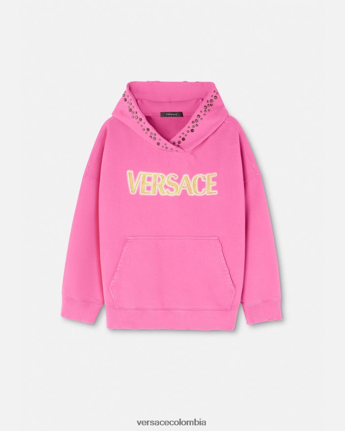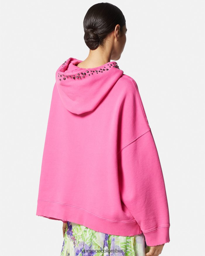 Confeccionada con punto de algodón con un estilo con tachuelas, esta sudadera holgada con capucha presenta el logotipo con un efecto de pintura en aerosol con inyecciones de neón y acabados desgastados para una actitud de inspiración grunge.
