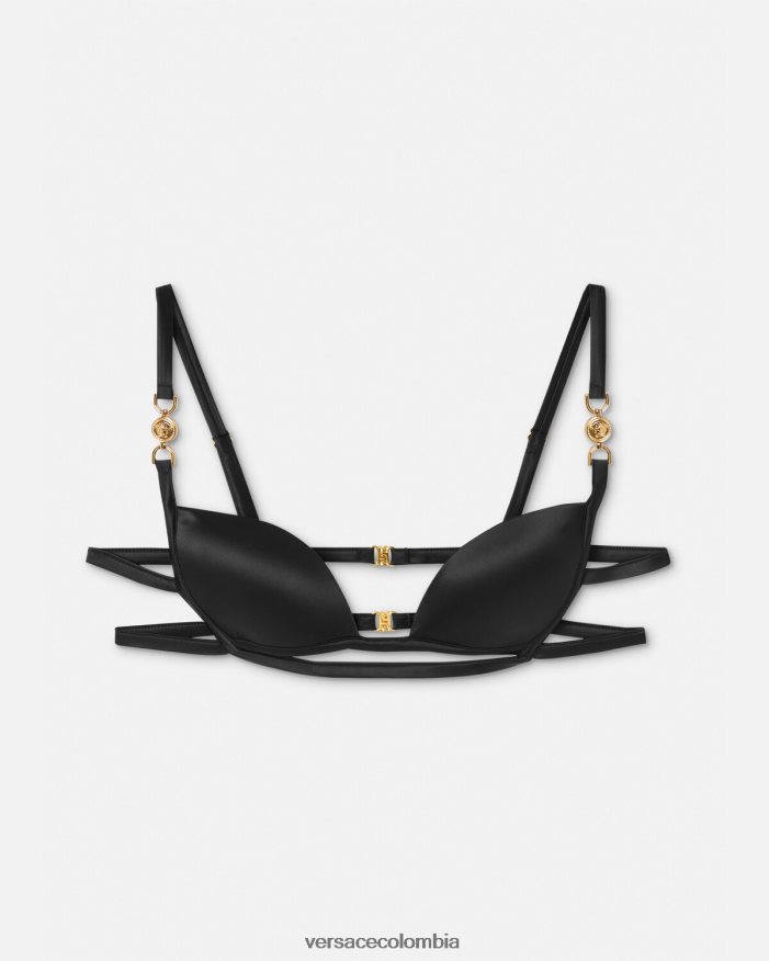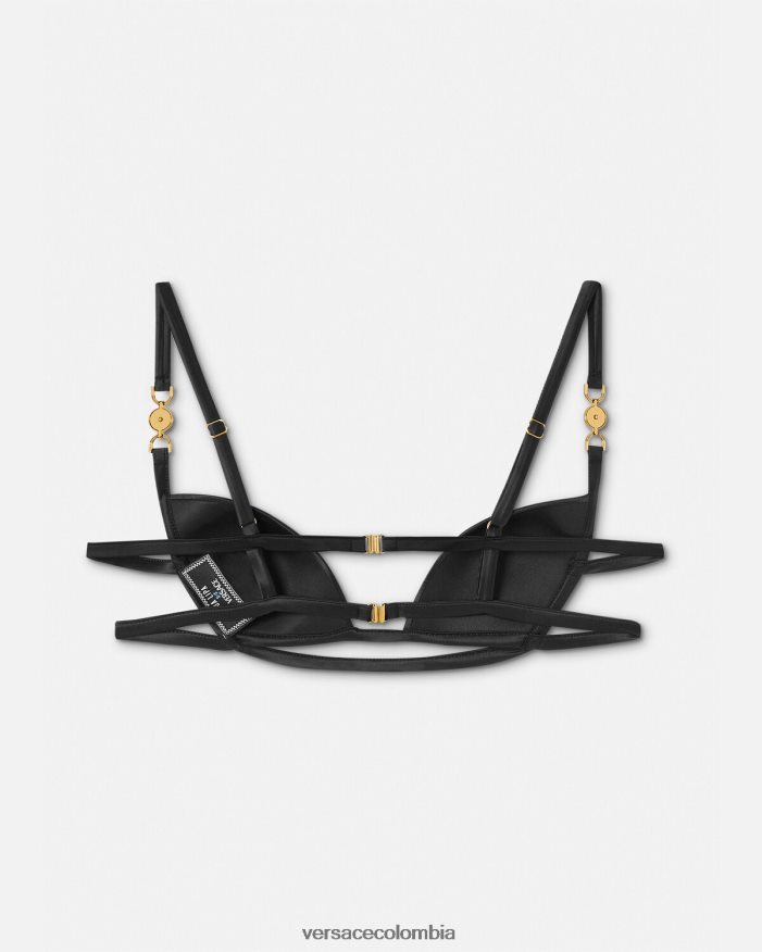 Este sujetador con efecto satinado está realzado por una medusa’95 en los tirantes de los hombros, un símbolo de la casa que debutó por primera vez a mediados de los años 90. El estilo de la ropa interior no tiene aros y tiene copas preformadas sin relleno. dua lipa x versace es una cápsula de estilos diseñados en colaboración con dua lipa y presentados en la pasarela de cannes.