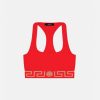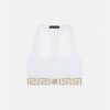 Este sujetador deportivo, con espalda de nadador y escote redondo, presenta una cinturilla elástica en el borde de greca con un motivo de medusa central.