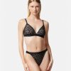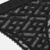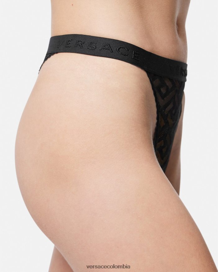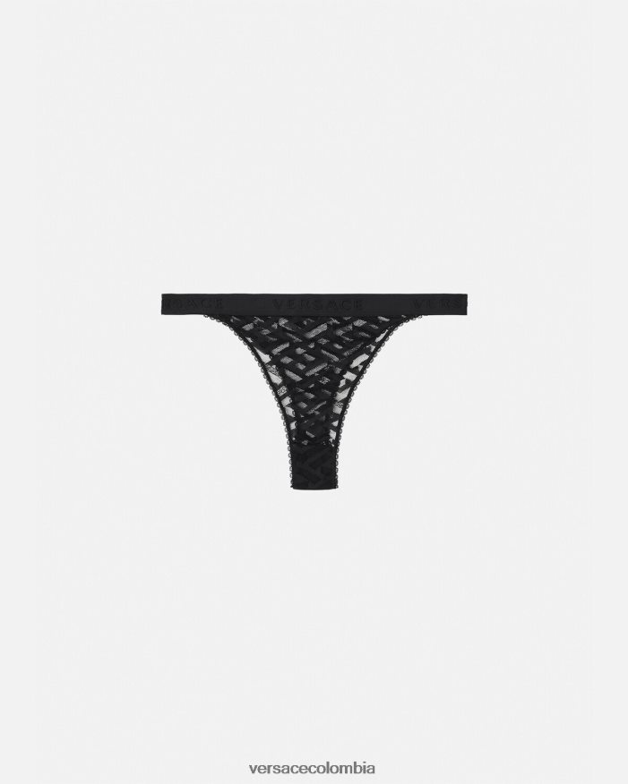 Confeccionada con tul ligero, esta tanga presenta el estampado de La Greca, un diseño de pasarela que presenta la llave griega junto con el logotipo de Versace en varios tamaños y combinaciones de colores. El delicado diseño está adornado con un sutil ribete de encaje.