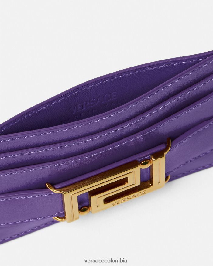 Confeccionado en cuero, este tarjetero con Greca Goddess está realzado por la cadena Greca con cuatro ranuras para tarjetas y un compartimento central.