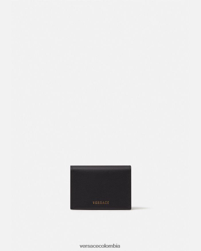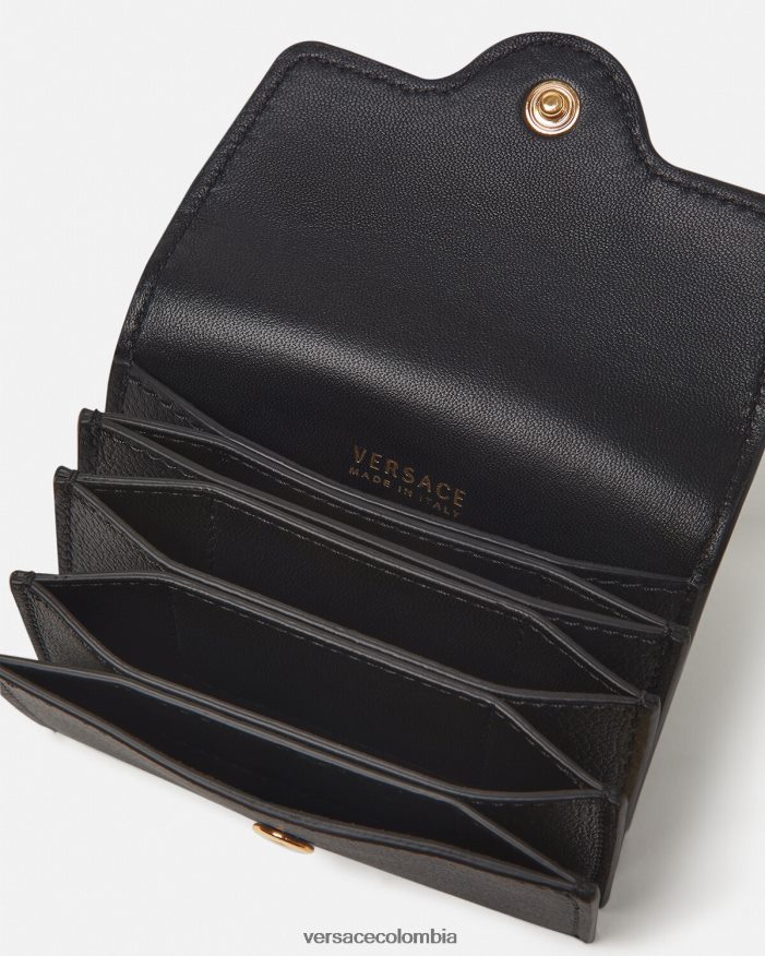 Este tarjetero de piel de becerro flexible, una combinación perfecta para los bolsos de La Medusa, está adornado con una placa de Medusa, la misma decoración que se descubrió en las puertas de la primera sede de la marca en Milán.