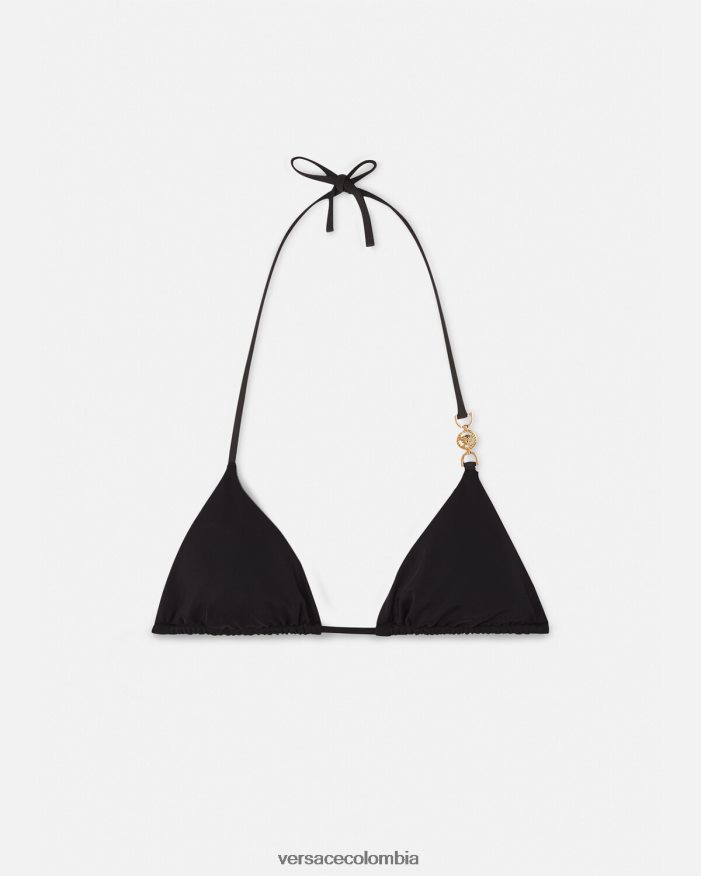 Este top de bikini triangular presenta piezas metálicas de Medusa’95 en uno de los tirantes delgados y se puede usar con braguitas a juego.