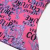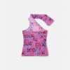 un top elástico y asimétrico con el logo estampado de alta costura y una manga cruzada con un solo hombro.