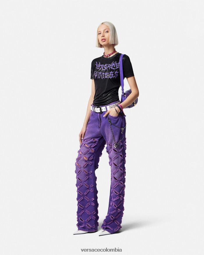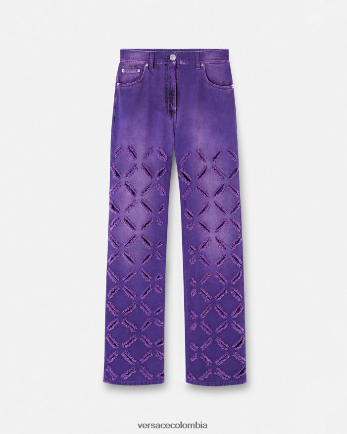 Confeccionados con mezclilla con un acabado lavado, estos jeans de pierna recta presentan cortes de diamantes desgastados cortados con láser en toda su extensión para una apariencia de inspiración grunge. Los botones de Medusa acentúan la pieza.