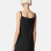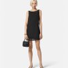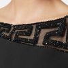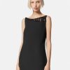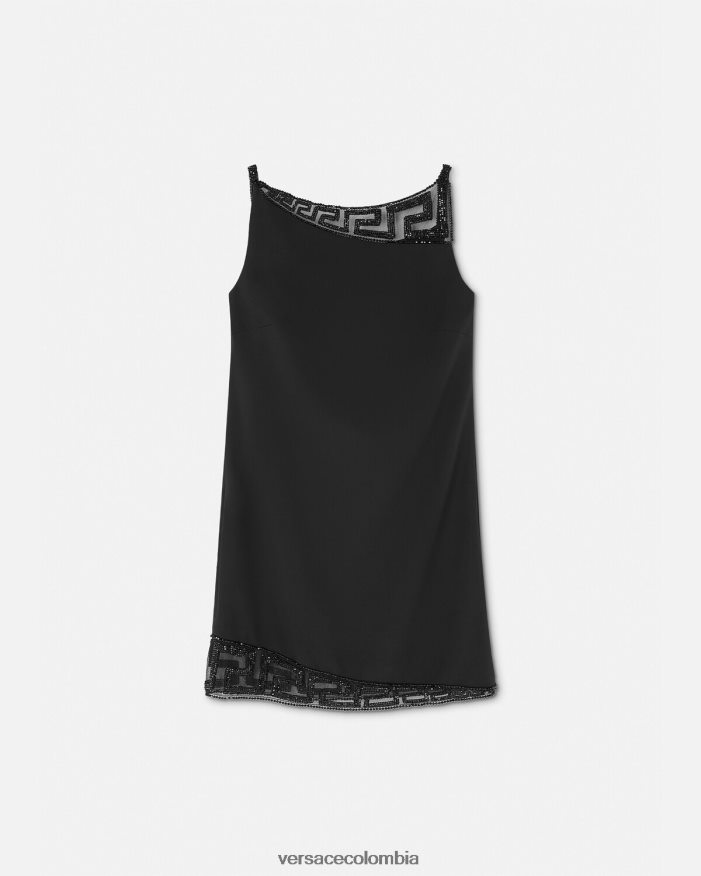 Este minivestido de crepé, ideal para la noche, tiene un diseño sin mangas con inserciones de malla transparente y adornos de cristal en un diseño crescendo.
