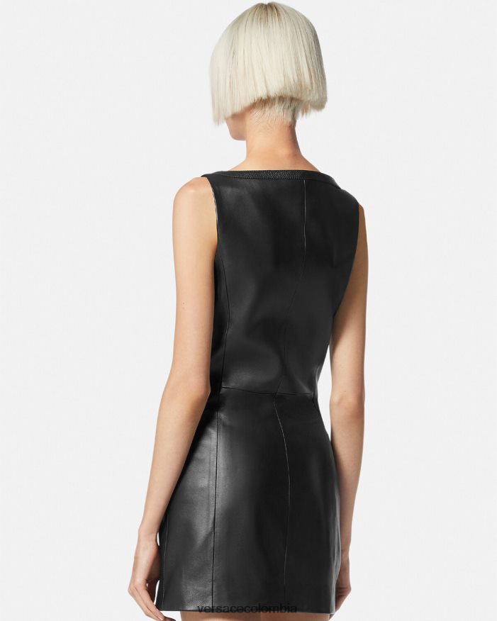 mujer vestido corto de cuero estilo motero Versace negro 2RP40F67 ropa