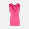 Confeccionado en punto fluido, este minivestido sin mangas tiene un escote en V pronunciado y detalle de cordón fruncido en los hombros.