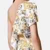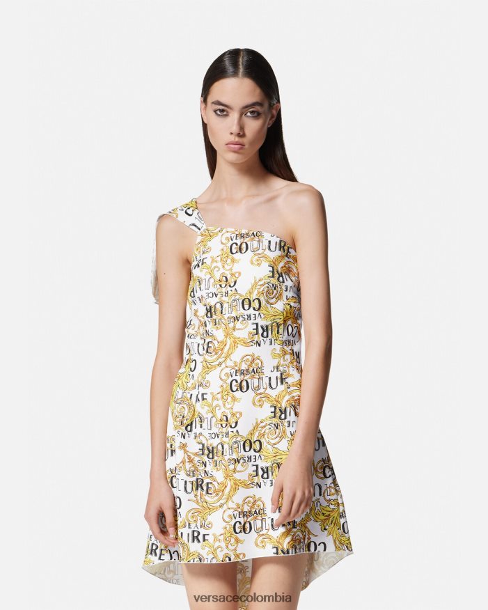 mujer vestido de alta costura con logo y un solo hombro Versace oro y blanco 2RP40F2186 ropa