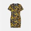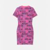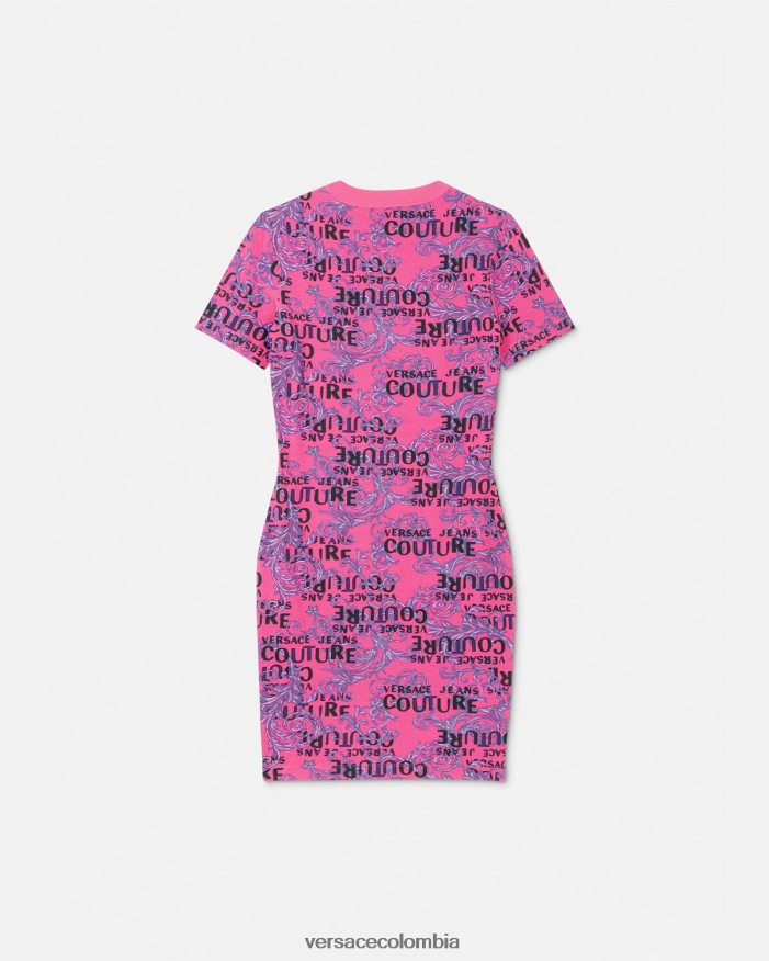 Este vestido camisero de punto tiene mangas cortas y presenta un estampado de logotipo de alta costura por toda la prenda.