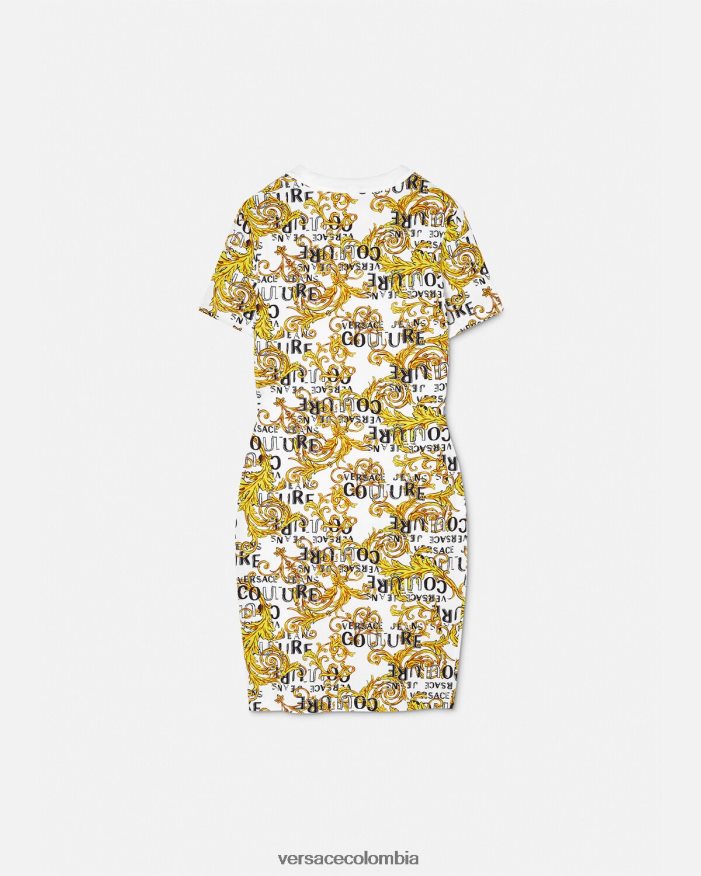 mujer vestido estilo camiseta de alta costura con logo Versace oro y blanco 2RP40F2185 ropa