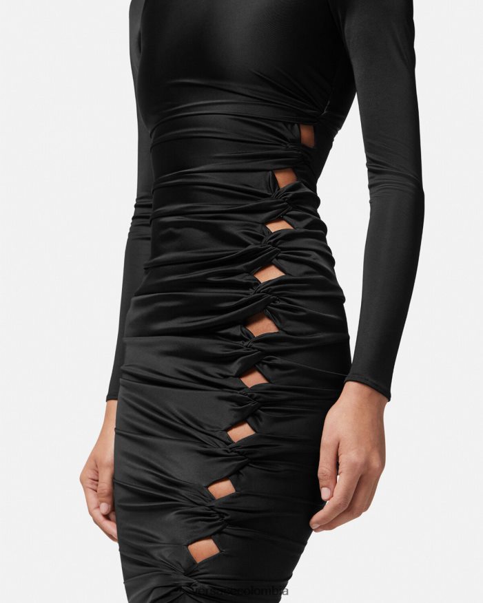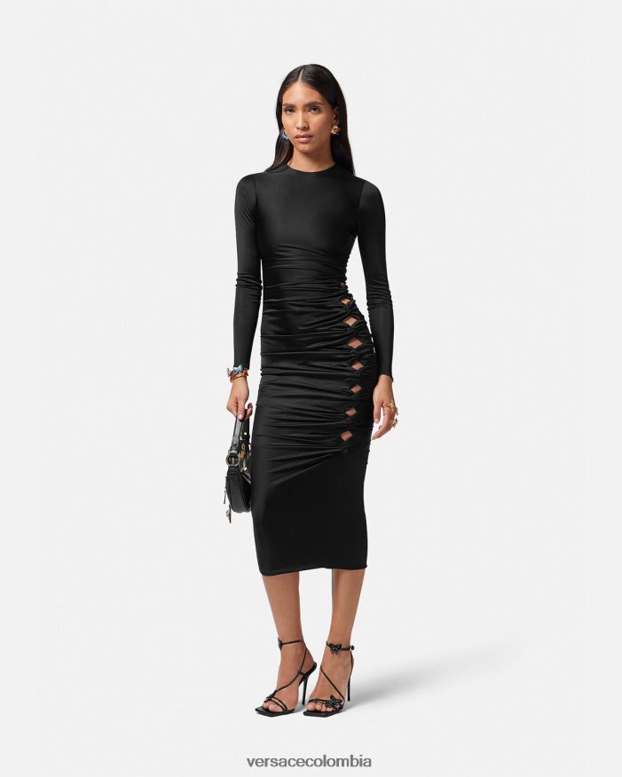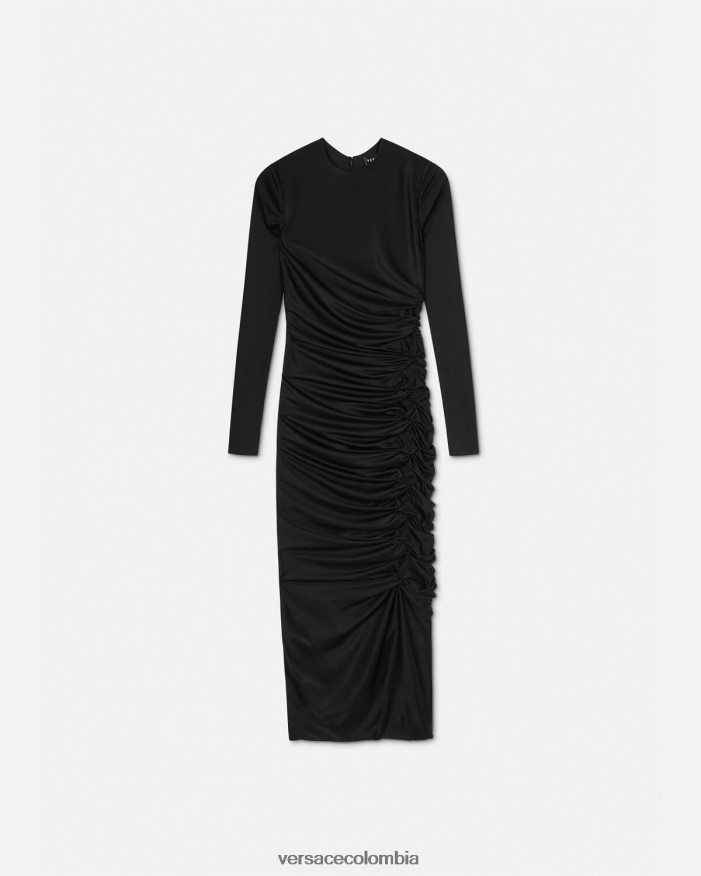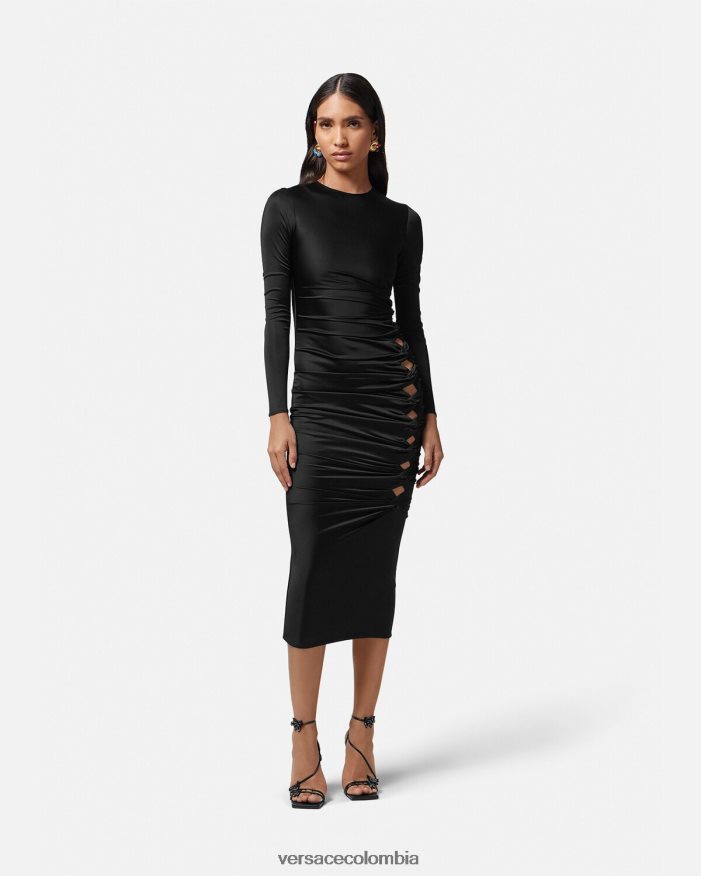 Dua Lipa es la diseñadora invitada de la colección cápsula Dua Lipa x Versace, realizada en colaboración con Donatella Versace. Este vestido midi de manga larga está confeccionado en un punto fluido con detalles anudados recortados a lo largo de los lados para un efecto drapeado.