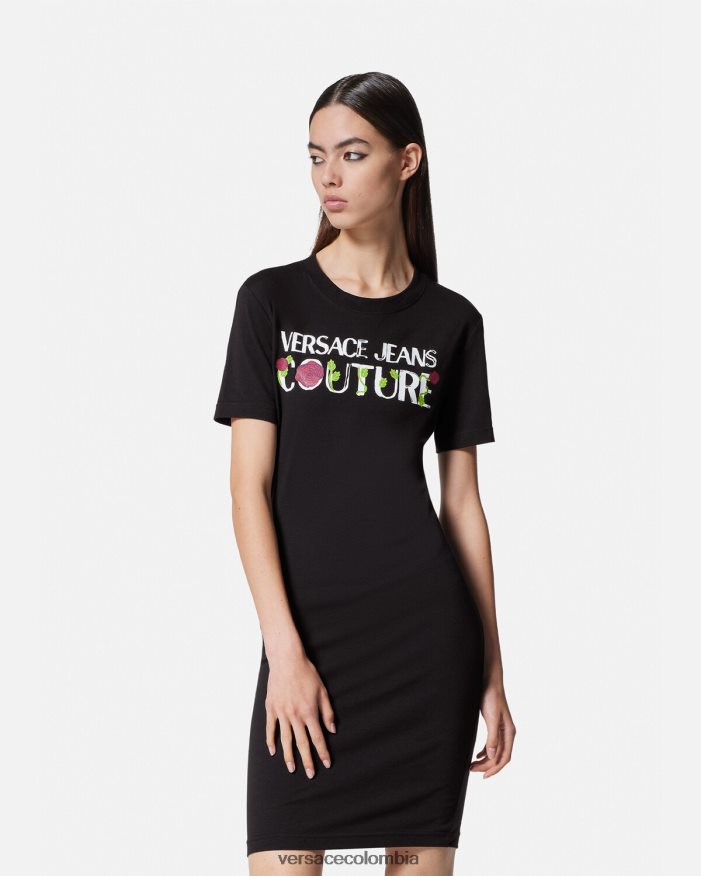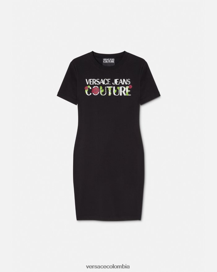 mujer vestido tipo camiseta con logo y rosas Versace negro 2RP40F2157 ropa