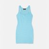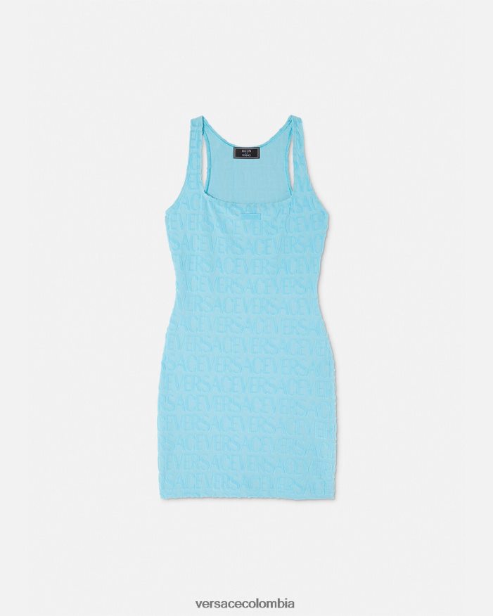 Esta prenda playera sin mangas presenta un estampado integral de Versace en una textura de toalla. dua lipa x versace es una cápsula de estilos diseñados en colaboración con dua lipa y presentados en la pasarela de cannes.