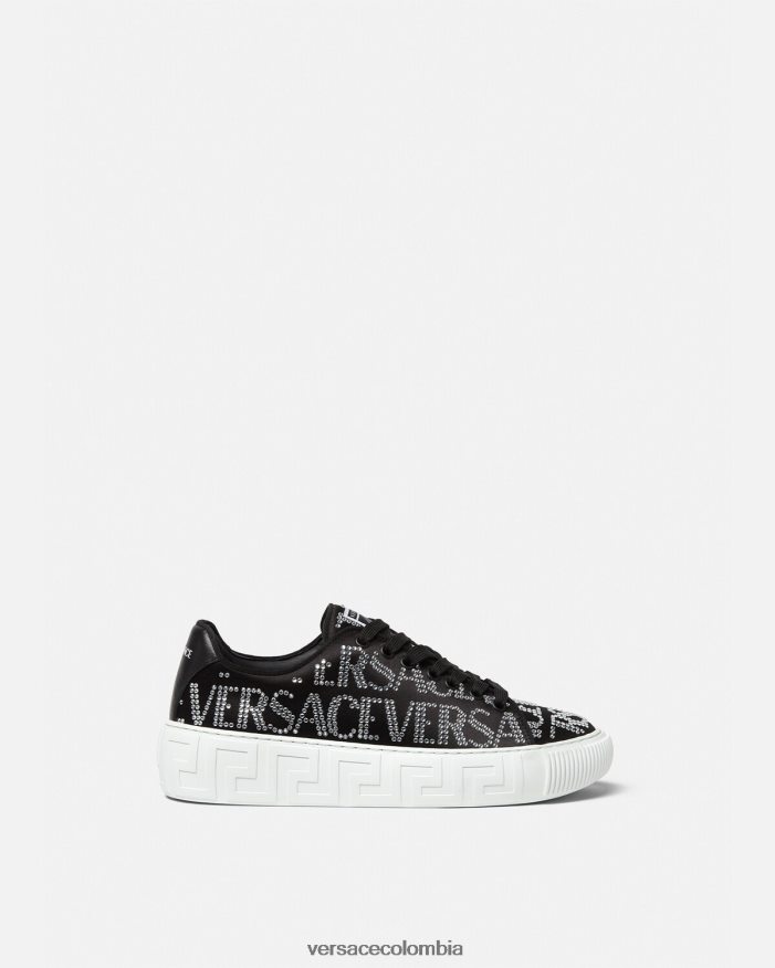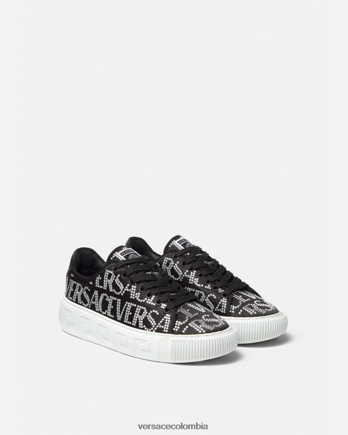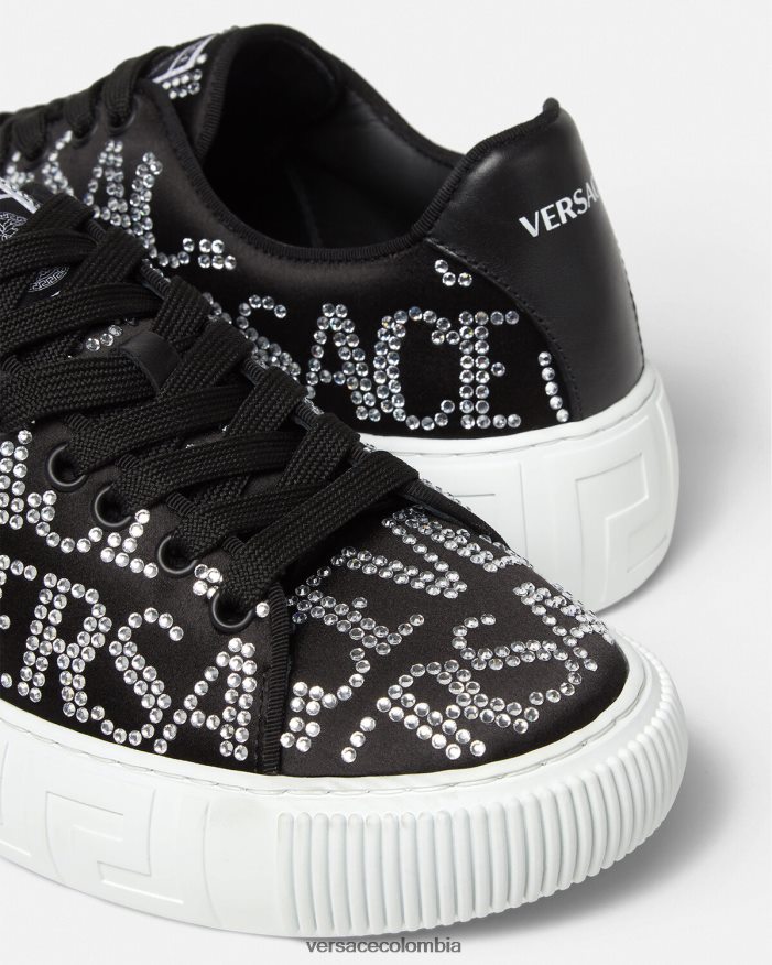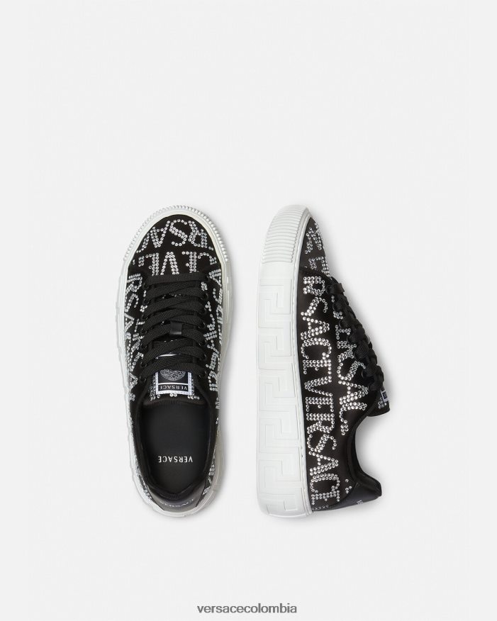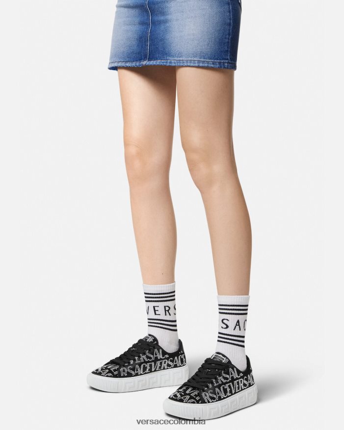 mujer zapatillas con greca en toda la prenda con cristales Versace negro 2RP40F498 zapato