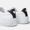 Confeccionadas con cuero flexible, las zapatillas Greca se caracterizan por sus líneas sencillas y limpias y el patrón gráfico de Greca en la entresuela. El diseño de caña baja está adornado con detalles de greca estampados atrevidos.
