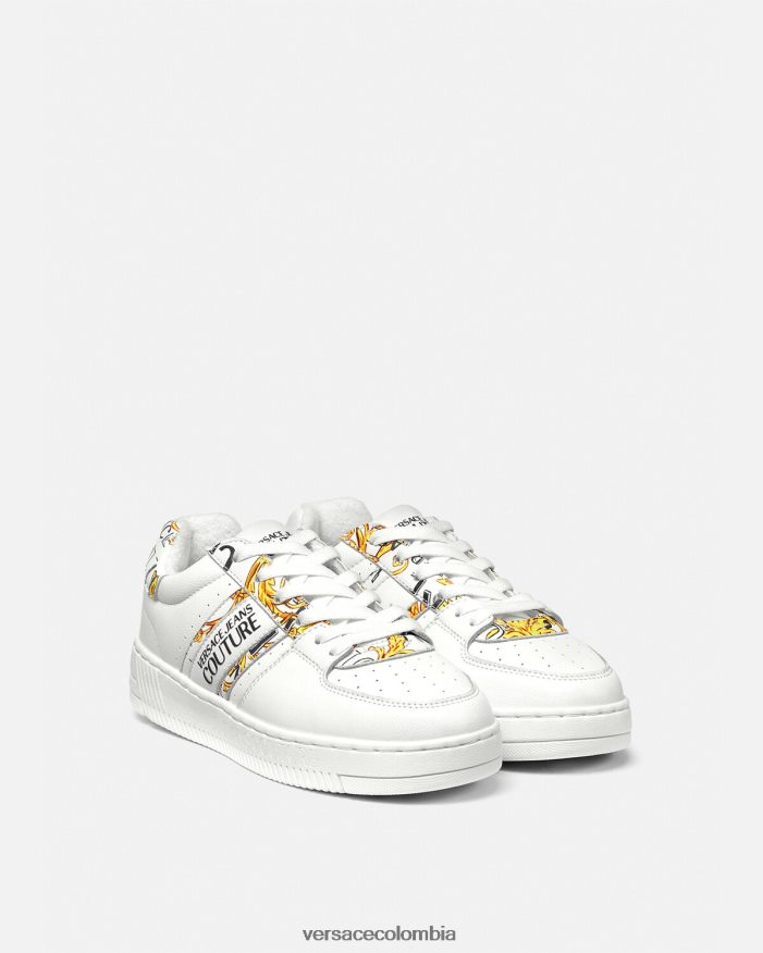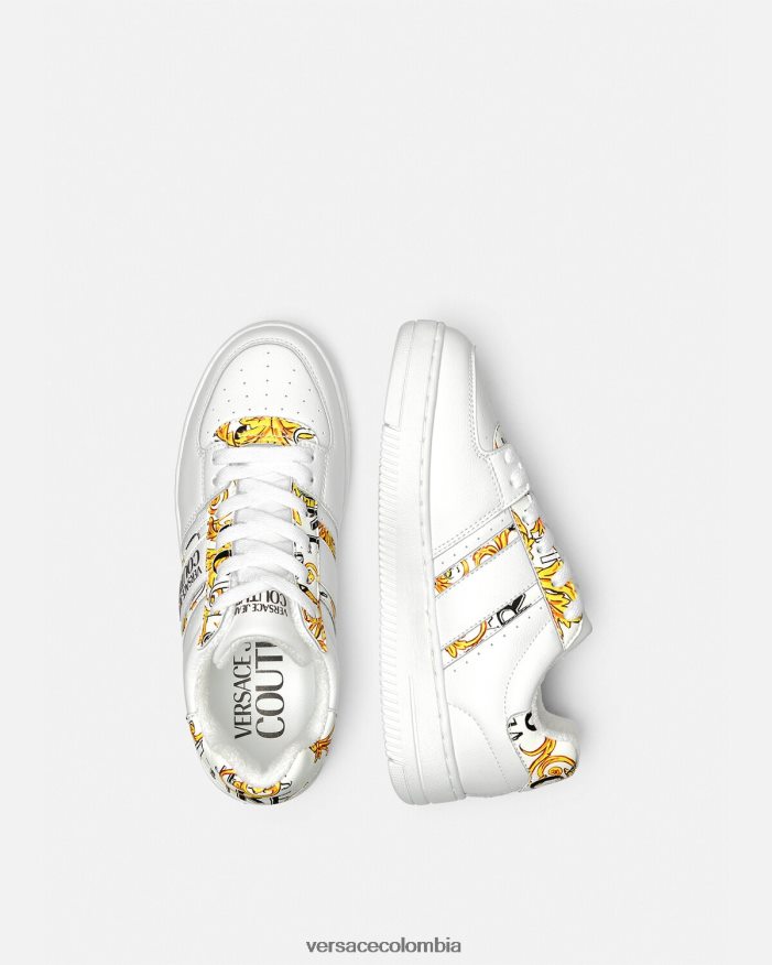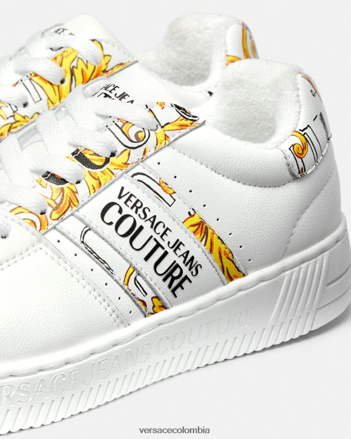 mujer zapatillas con logo Brush Couture Meyssa Versace oro y blanco 2RP40F2295 zapato