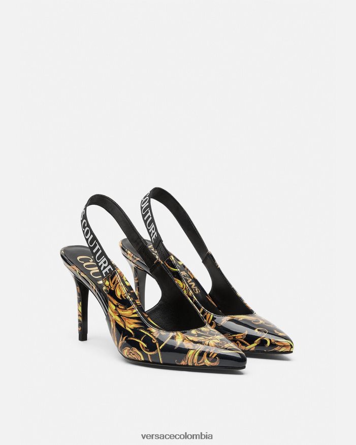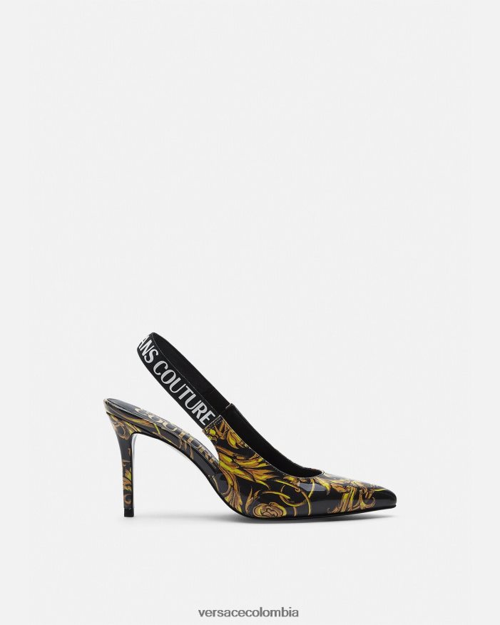 mujer zapatos de tacón de alta costura con logo Versace oro negro 2RP40F2308 zapato