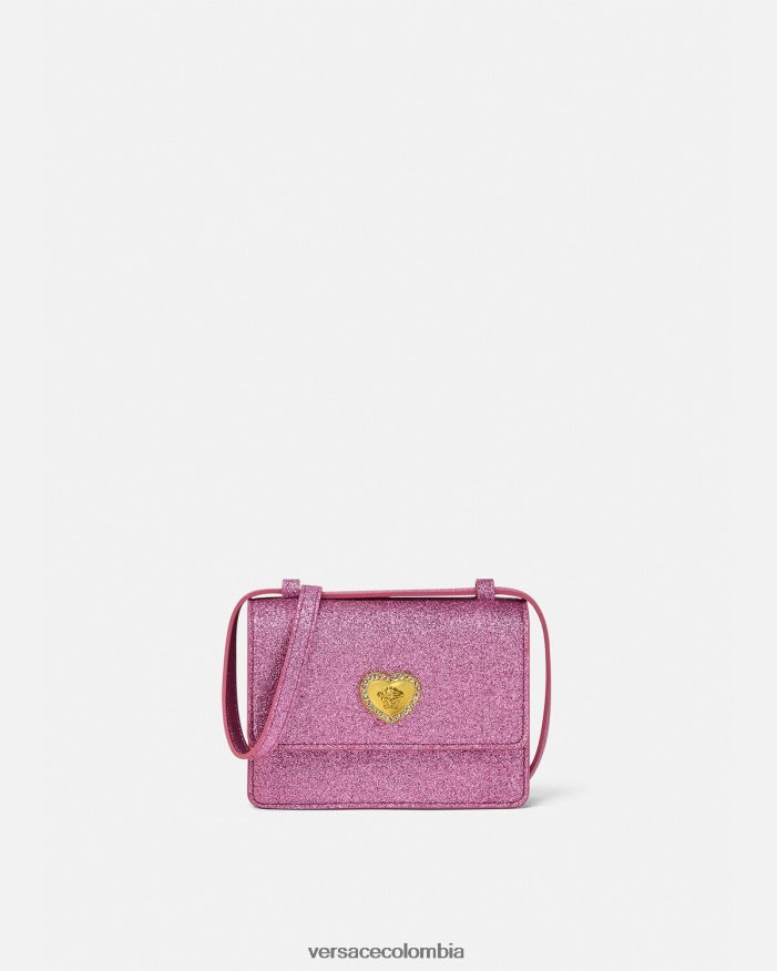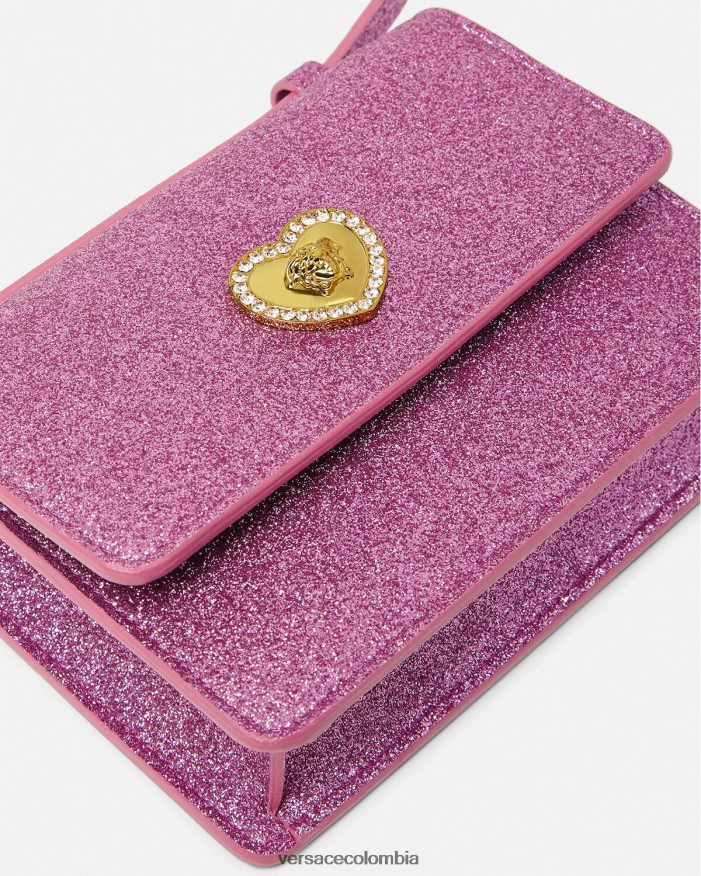 un pequeño bolso bandolera con purpurina que se robará el corazón de todos con su medusa en forma de corazón adornada con cristales en la parte delantera.
