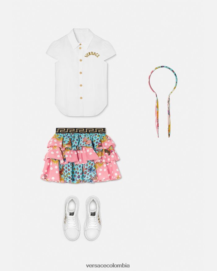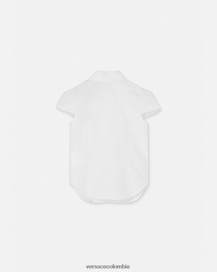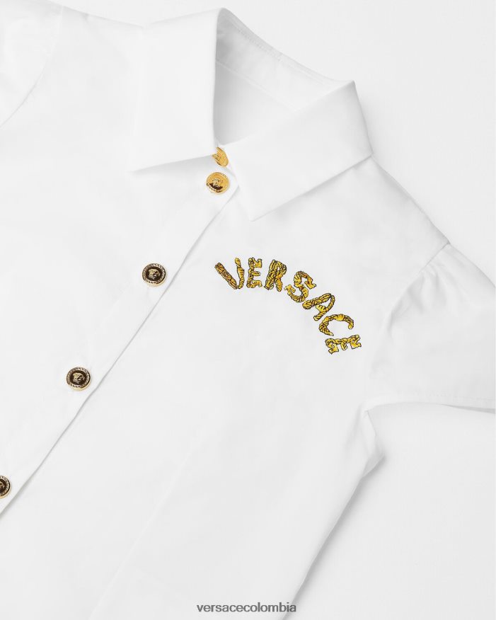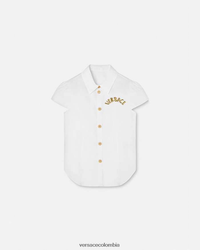 una versátil camisa de popelina de algodón de manga corta con botones de medusa y un logo de versace kids bordado en la parte delantera.
