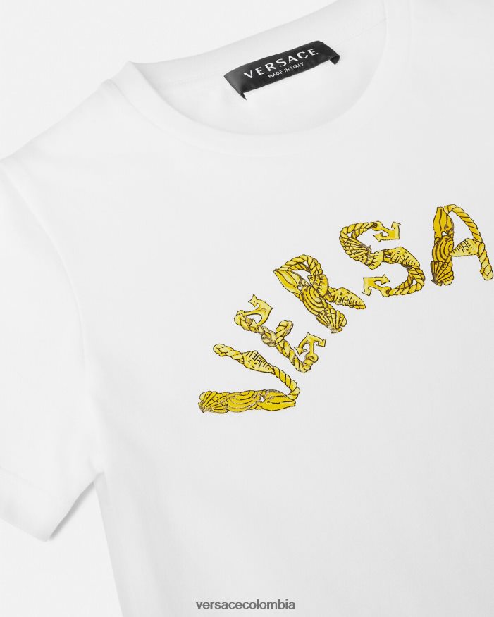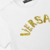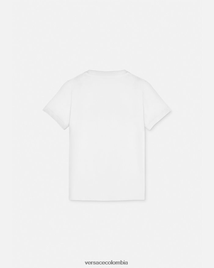 Esta camiseta de algodón de manga corta presenta el motivo del logo de Versace en la parte delantera en un color en contraste.