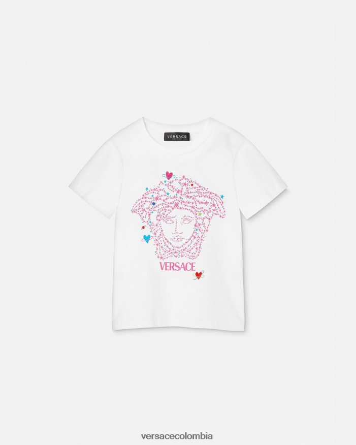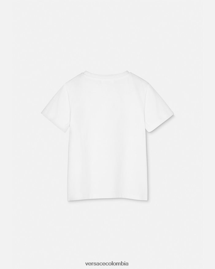 una camiseta de algodón de manga corta con un motivo infantil de medusa galáctica brillante y el logotipo de versace.