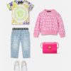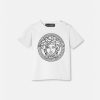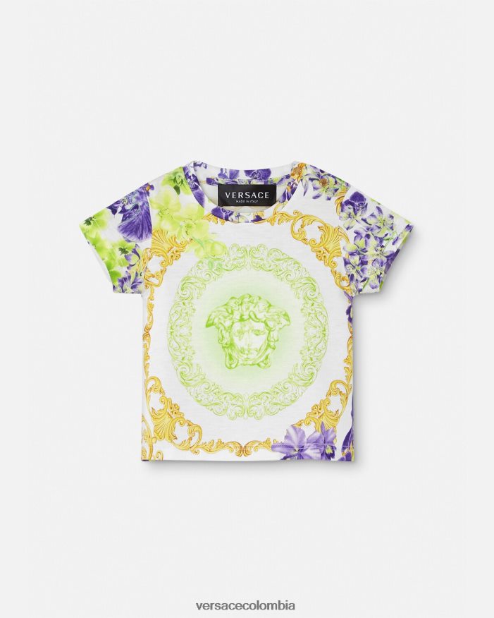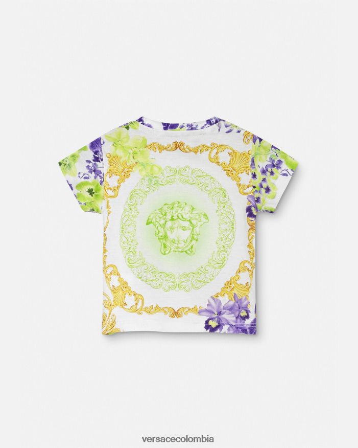 Una camiseta de manga corta de punto de algodón con estampado infantil de orquídea medusa en toda la prenda.