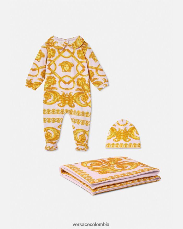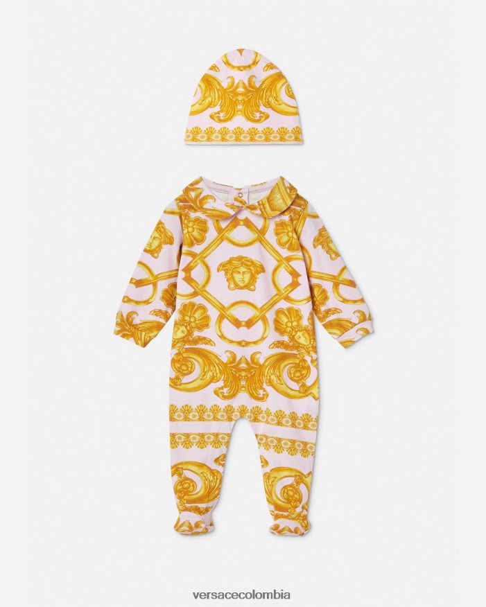 niños conjunto de pelele para bebé barocco 660 Versace rosa claro y dorado 2RP40F1826 ropa