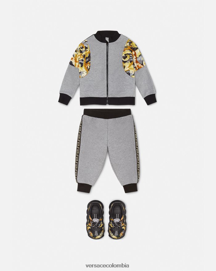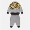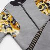 Confeccionado en felpa de algodón, este conjunto incluye una chaqueta con pantalones deportivos a juego con el estampado barrocoflage para niños. Los suéteres de felpa están adornados con detalles de greca a lo largo de las piernas.