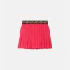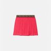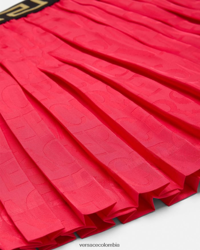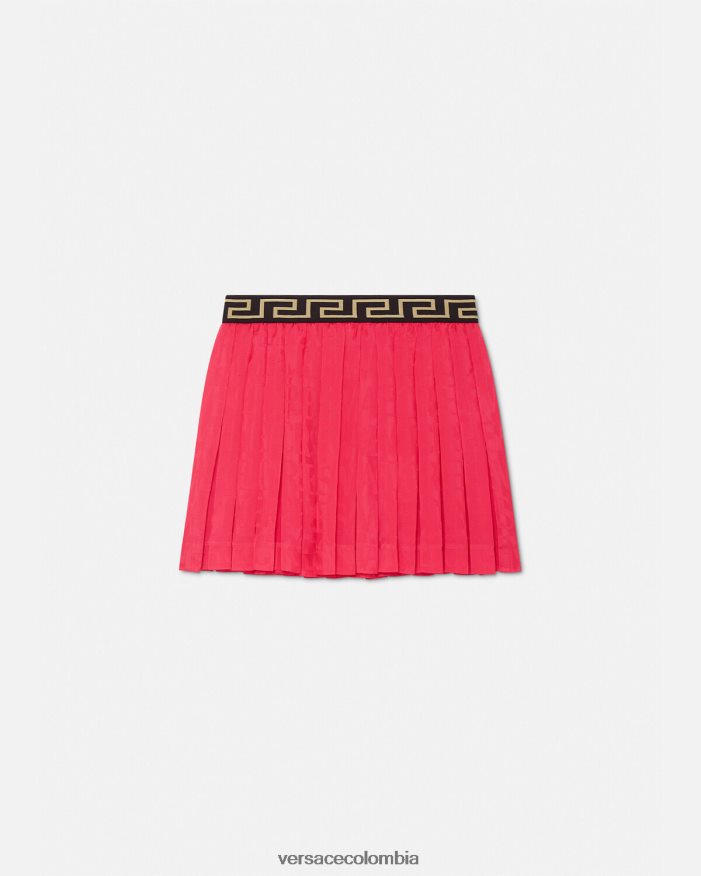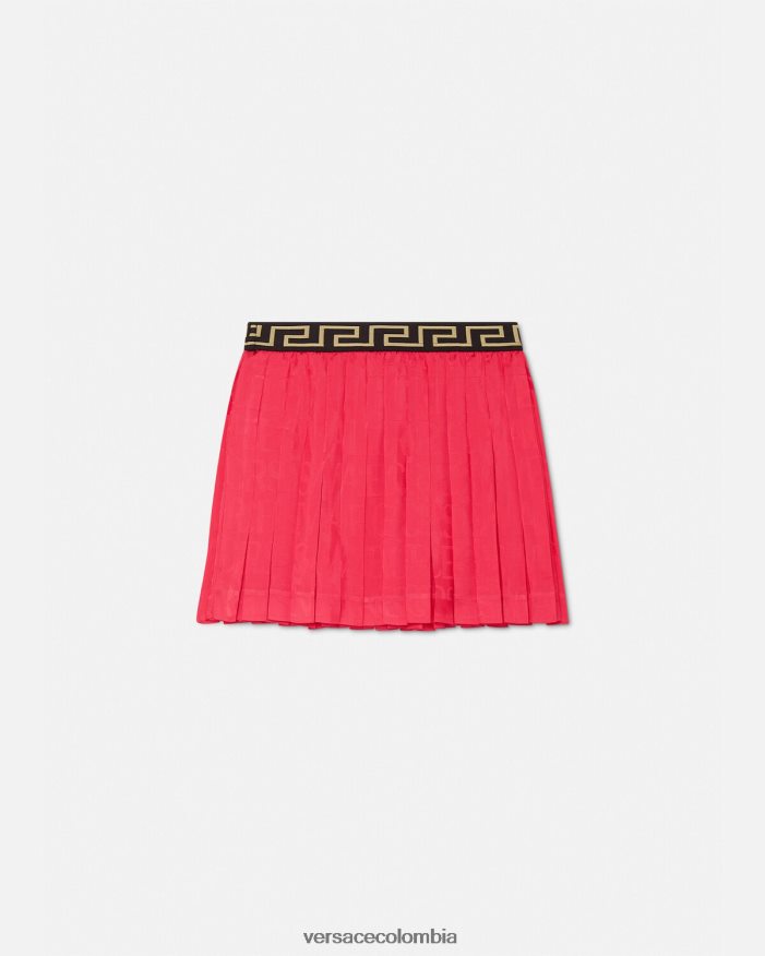 una falda plisada con un estampado del logo de Versace Kids en satén en jacquard, completa con una cinturilla con borde de greca.