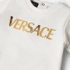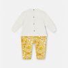 Suave y acogedor, este pelele presenta la parte inferior con estampado barroco y el logo en lámina dorada en la parte superior.