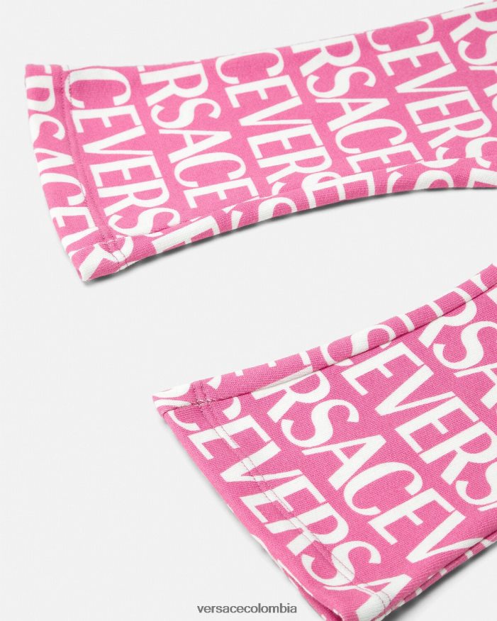 Confeccionados con punto de algodón, estos pantalones deportivos acampanados cuentan con un estampado del logo infantil de Versace en toda la prenda y una cinturilla elástica con el borde de greca.