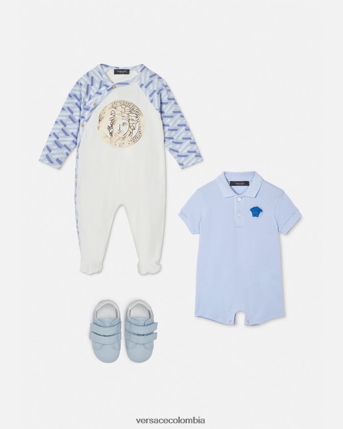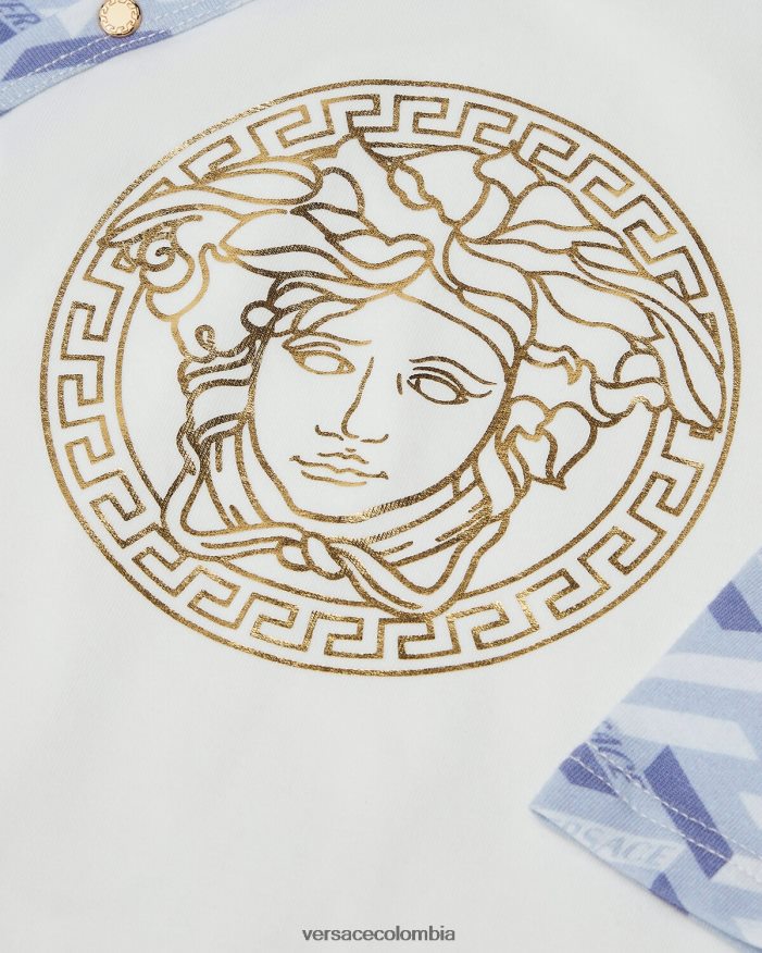 niños pelele de bebé con medusa la greca Versace azul claro y blanco 2RP40F1832 ropa