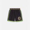 Listo para chapotear en la piscina o disfrutar de la playa: estos cómodos bañadores vienen con un estampado infantil barroco en toda su superficie. Combínalo con sandalias coloridas para un look divertido.