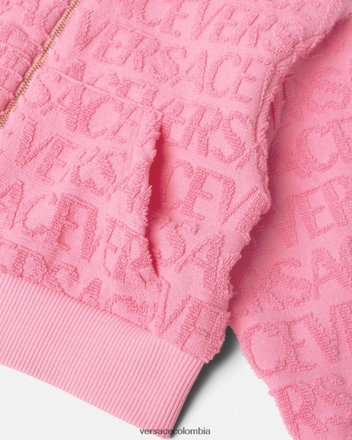 Esta versátil sudadera con capucha se puede utilizar para citas de juego y días de playa gracias a su tejido de toalla mini me con el estampado integral de Versace. El estilo con capucha no está forrado y está rematado con ribetes acanalados.