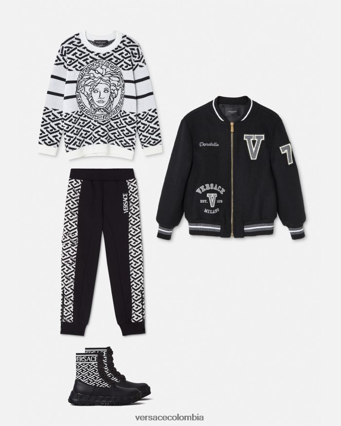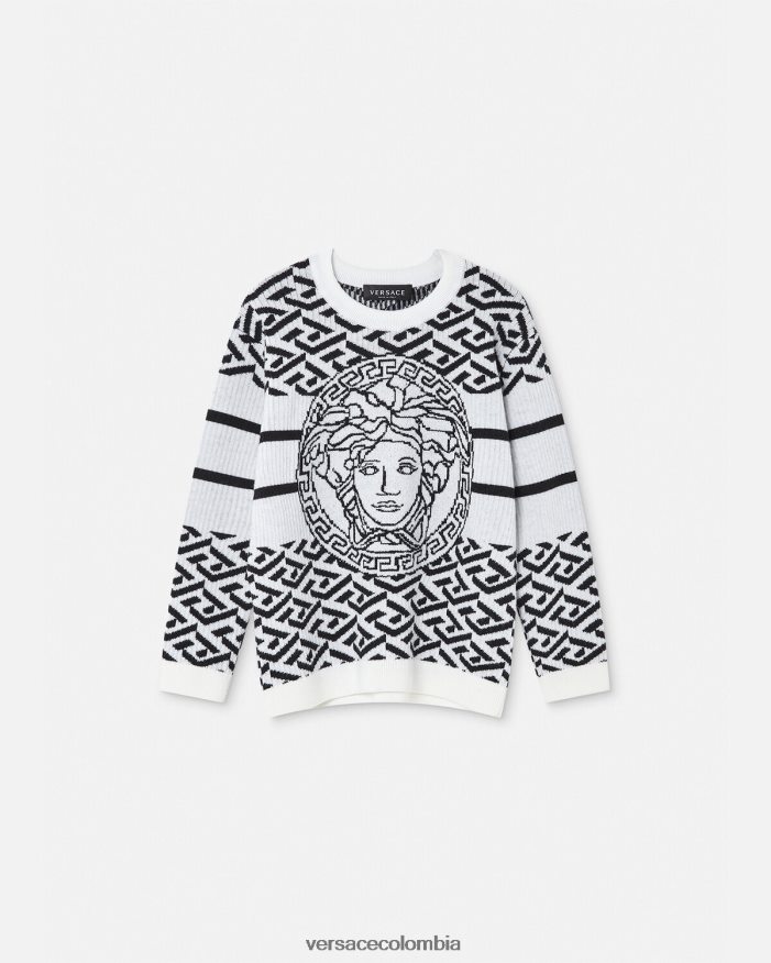 Confeccionado en lana, este suéter de punto está listo para jugar para los más pequeños. Este estilo cómodo presenta el motivo de Medusa sobre el estampado infantil característico de La Greca.