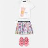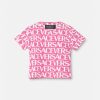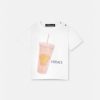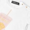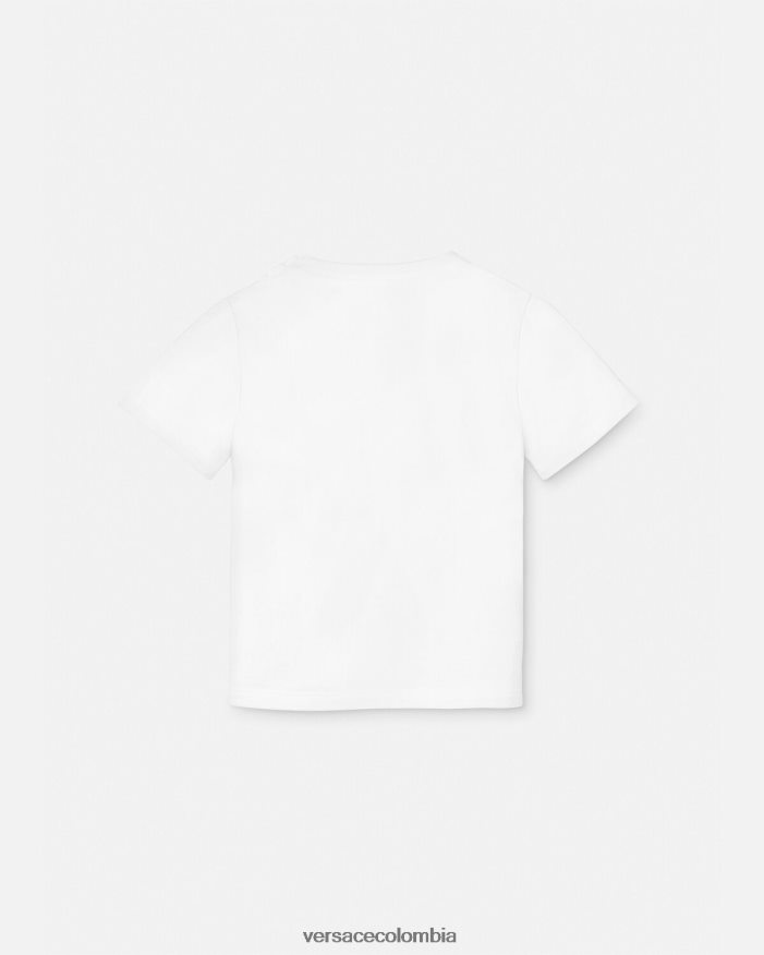 una camiseta de manga corta para los más pequeños con la taza de viaje característica de versace y el logotipo de versace estampado. Dos botones a presión permiten una fácil extracción.