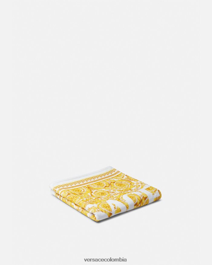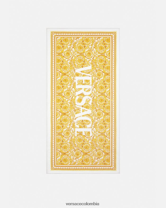 Una toalla de playa suave para días divertidos bajo el sol, con un estampado infantil barroco en toda la prenda y el logotipo de Versace en el centro.
