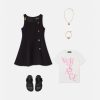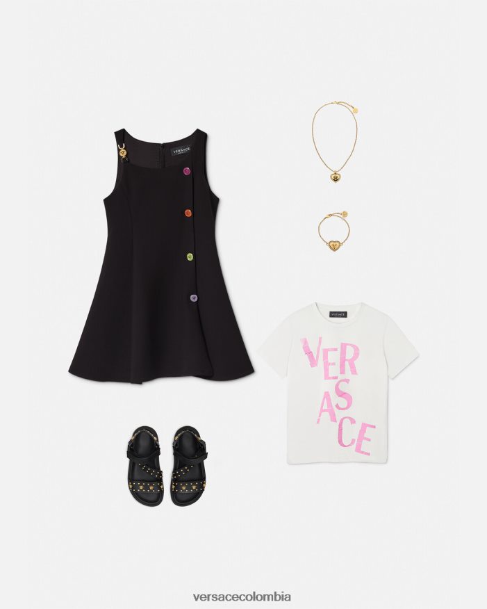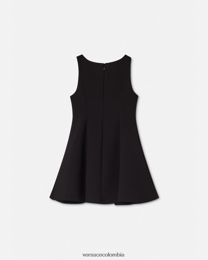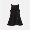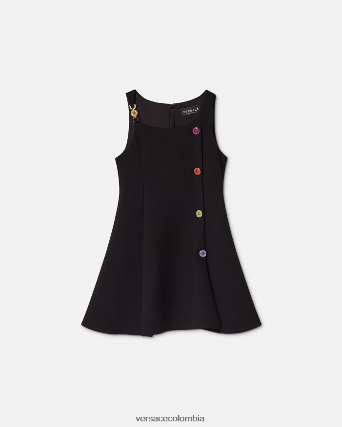 este vestido sin mangas tiene una silueta acampanada y recta y está realzado por botones decorativos de medusa multicolores