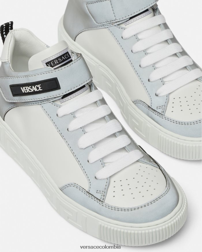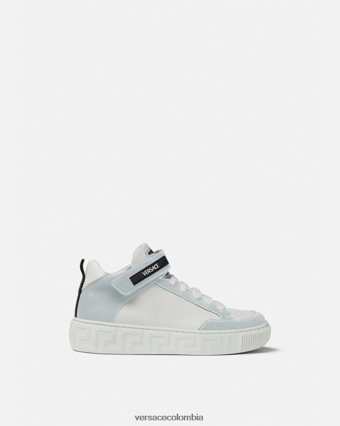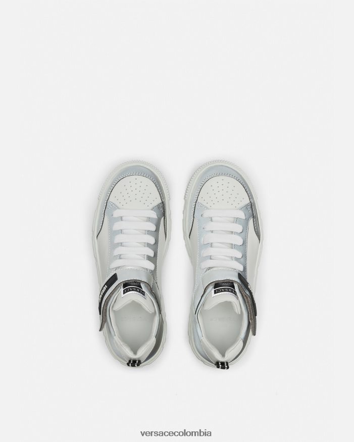 Zapatillas altas con inserciones de colores contrastantes en la parte superior y entresuela con Greca en relieve. Estas zapatillas añaden un toque Versace a la escuela o al patio de recreo.