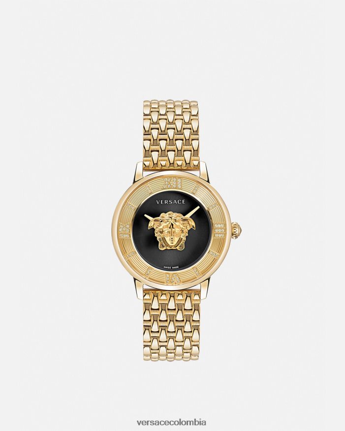 Este reloj, elegante e impactante, presenta una medusa tridimensional engastada entre dos cristales e índices de números romanos adornados con 60 diamantes de 0,33 quilates. El reloj La Medusa se completa con una correa de metal.