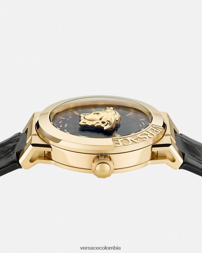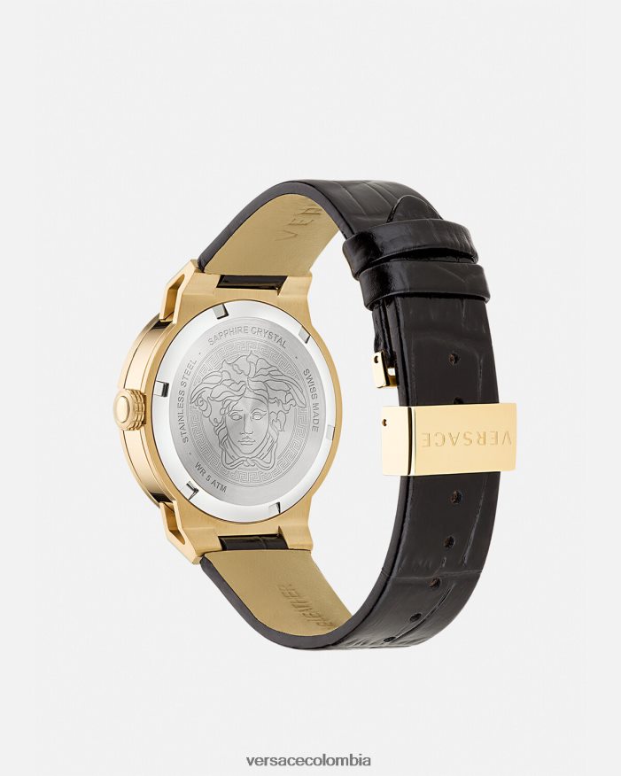 - caja: redonda de IP color champán de 38 mm con logotipo de Versace en el anillo