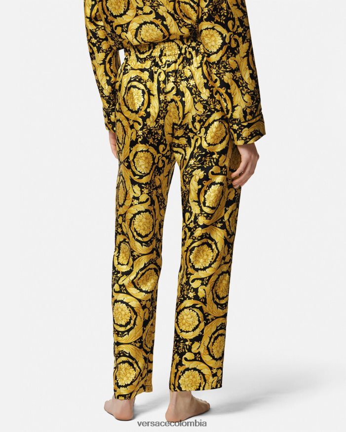 Confeccionados con seda suave, estos pantalones de pijama cuentan con un estampado barroco por toda la prenda y cuentan con una cinturilla elástica.